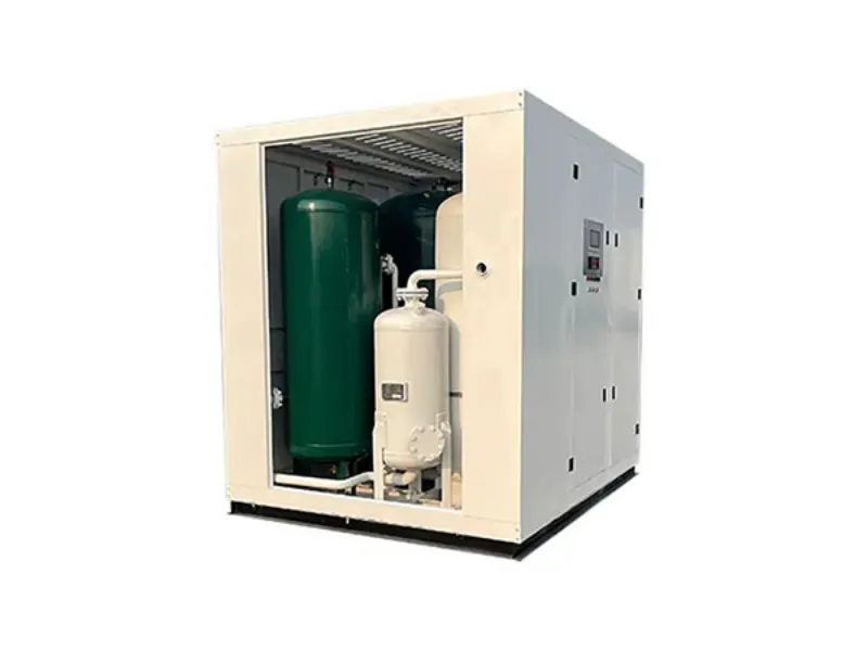 La conception fermée en armoire fait référence à son architecture compacte et intégrée, tandis que le principe fondamental de génération d’azote reste celui d’un système PSA standard. L’air comprimé subit d’abord un prétraitement pour éliminer l’huile, l’humidité et les impuretés. L’air propre entre ensuite dans les tours d’adsorption, où le tamis moléculaire au carbone adsorbe préférentiellement l’oxygène sous pression, permettant l’enrichissement et la collecte de l’azote. Après saturation de l’adsorption, la pression est relâchée et les impuretés adsorbées sont désorbées pour régénérer le tamis moléculaire. Plusieurs tours d’adsorption alternent entre adsorption et régénération, assurant une production continue d’azote avec une pureté comprise entre 95 % et 99,9995 %.