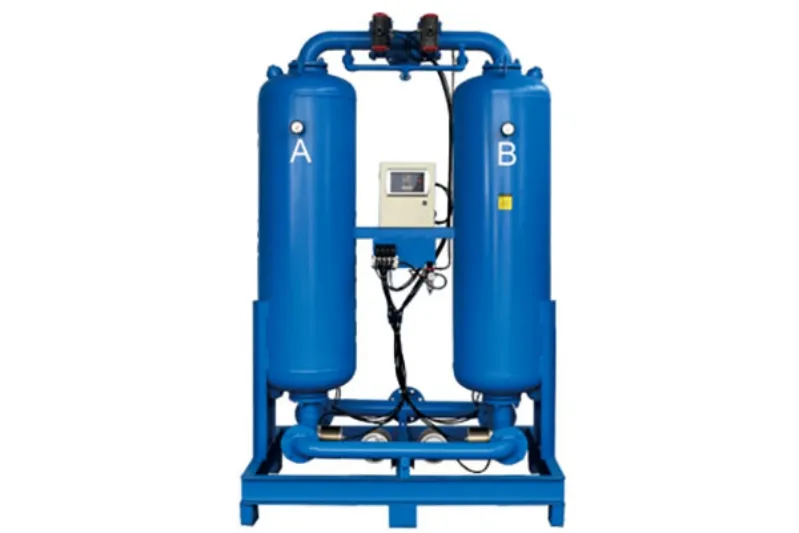 L’adsorption de l’humidité est obtenue en faisant passer l’air comprimé à travers des tours d’adsorption remplies de matériaux dessiccants tels que le tamis moléculaire ou l’alumine activée. La vapeur d’eau est captée par l’adsorbant, et l’air sec sort de la tour.